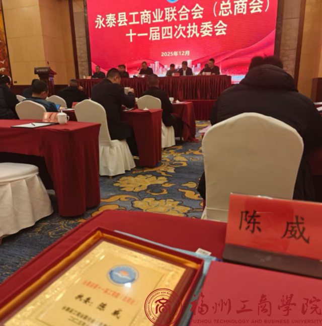 12月26日,永泰县工商联(总商会)召开第十一届四次执委会议。福州工商学院工学院教师陈威受邀出席会议,并当选为县工商联(总商会)第十一届执行委员。 县委常委、县委统战部部长柯永华出席会议并讲话,会议由县委统战部副部长、县工商联党组书记陈飞江主持。
